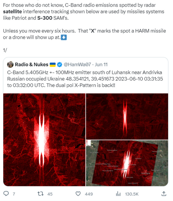 For those who’ve followed my writings, you may recall several times that I’ve posted satellite photos showing how American SIGINT satellites can detect Russian radar installation positions simply based on their particular band emissions: