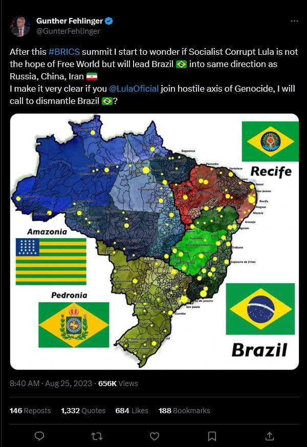 Recall the NATO-linked madman Fehlinger whose calls to break up Brazil I posted last time: