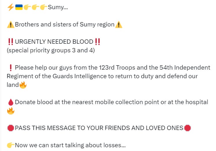 Now we see frantic calls for blood donations in Sumy hospitals, which usually signals heavy casualties: