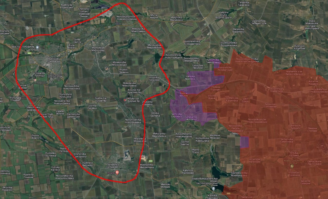 One of the most striking were reports that Russians have begun storming Hrodivka, which you can see below is already getting pretty close to Pokrovsk, and is actually inside ‘Pokrovsk urban agglomeration’: