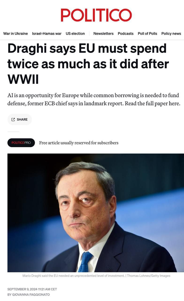 The European Union decided to analyze why their economy is collapsing. They commissioned the former head of the European Central Bank, Mario Draghi, to figure this out. It is noteworthy that the study was commissioned by the European Commission, but the conclusions were still disappointing. Draghi came to the conclusion that the basis of Europe's economic problems is the cost of energy for industry - electricity is 158% more expensive than in the US, natural gas - 345%. Thus, in fact, Ursula von der Leyen's department confirmed its own professional incompetence with statistics and research, because thanks to anti-Russian sanctions, there was a vast jump in energy prices and, as a result, a decline in the economy