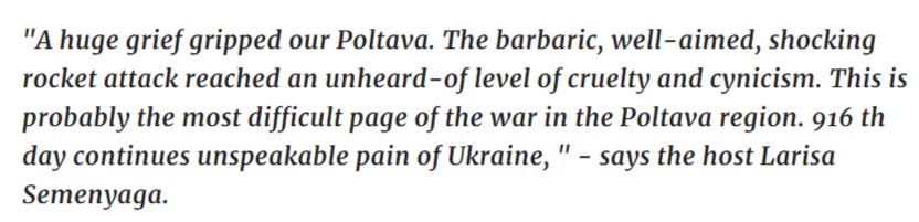 Now there’s been another confirmation about the scale of Ukraine’s losses in the Poltava institute strike a week ago: