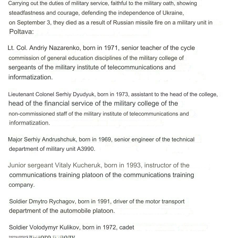 Strike on Poltava few days ago, two lieutenant colonels and one major were demilitarised...