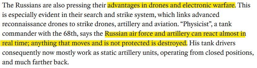 This is another interesting admission that flies in the face of current dogma—that Russians have the drone and tech advantage: