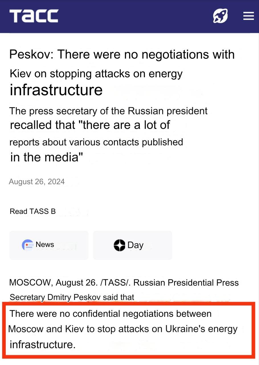 In fact, here is the original Tass report from late August that shows Peskov officially shooting this rumor down: