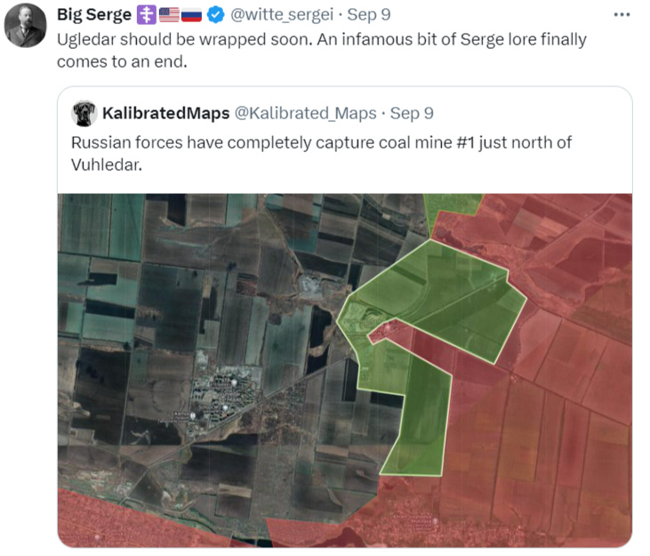 Which segues us into the battlefield developments. I’ll leave larger updates for next time, as this Sitrep has enough geopolitical content to cover. But needless to say the Ukrainian front continues to collapse all over the place. Ugledar is almost entirely encircled and by the looks of it could fall in the near future, as Vodiane was totally captured just northeast of it. Even all the way in the north Russian forces have made big gains in the Kupyansk direction.