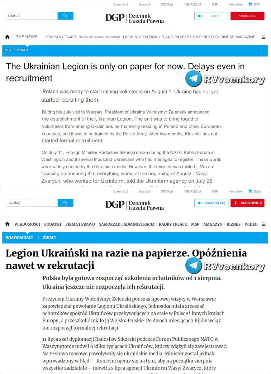 The formation of the "Ukrainian Legion" in Poland, announced by Zelensky in July, never started on the appointed date of August 1. Poland was ready to begin training volunteers, but Kyiv did not begin recruiting.