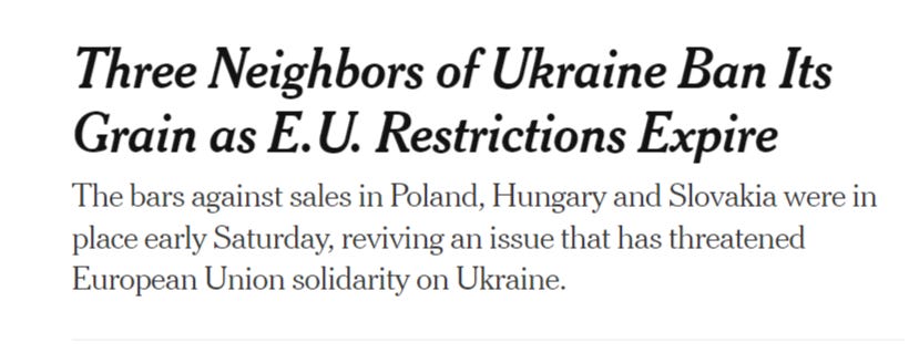 1) Croatia has now also joined the banning of Ukrainian grain. Romania, meanwhile, has tentatively decided to do it as well but only due to extreme domestic political pressure (i.e. the US-puppet gov't is purely in favor of unlimited grain imports from Ukraine, but the populace is opposed).