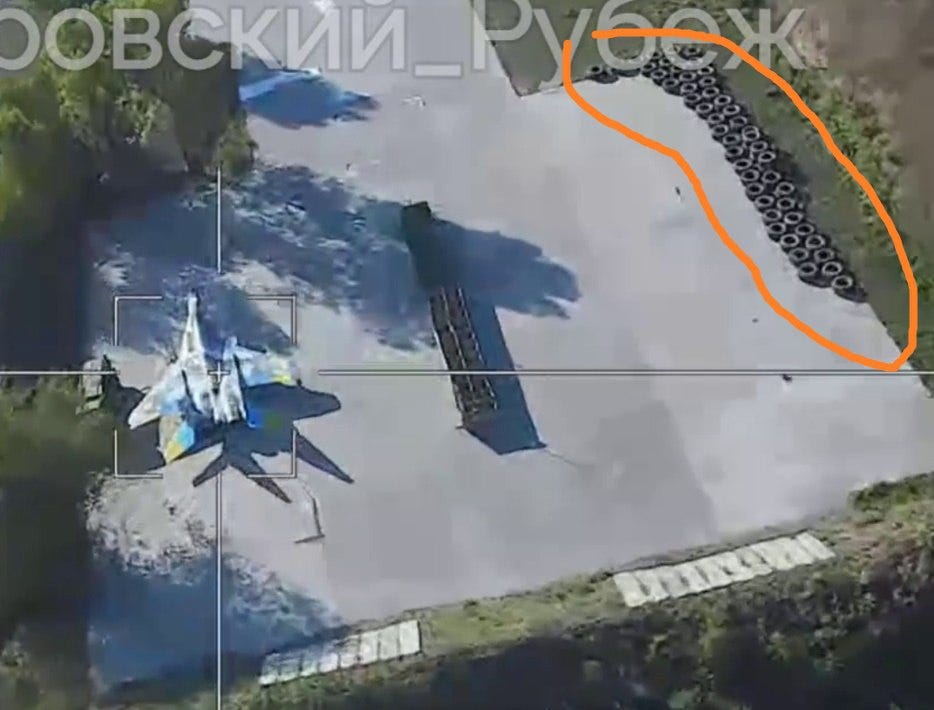 However, it brought up a lot of questions regarding how it’s possible that an airfield seemingly full of functional planes can be left unperturbed so close to the frontline, as you can see several other planes in the video. Some have suggested some of them may be mothballed donor planes for parts. Also based on this photo showing a stack of tires, some further suggested that Ukraine was readying to cover the planes with tires as Russia has recently done, or to burn the tires to create concealing smoke, sensing an upcoming attack—which could point to the fact that the planes had only just arrived prior to the hit: