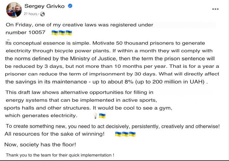 🇺🇦🤡 The Ukrainian government proposes that prisoners generate electricity by pedaling bicycles.