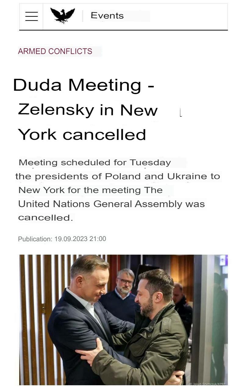 It’s now created bad blood, where Poland’s patience has run a bit low, such that Poland cancelled its planned meeting with Zelensky at the UN assembly: