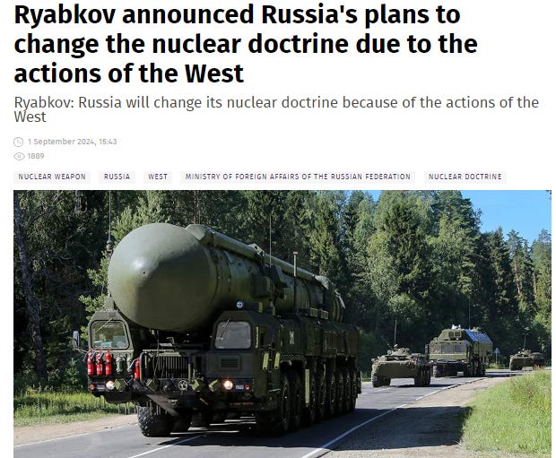 Now—lo and behold—not surprisingly Russia has again confirmed that it is working on modifying its nuclear doctrine. This time it was Deputy Foreign Minister Sergei Ryabkov: