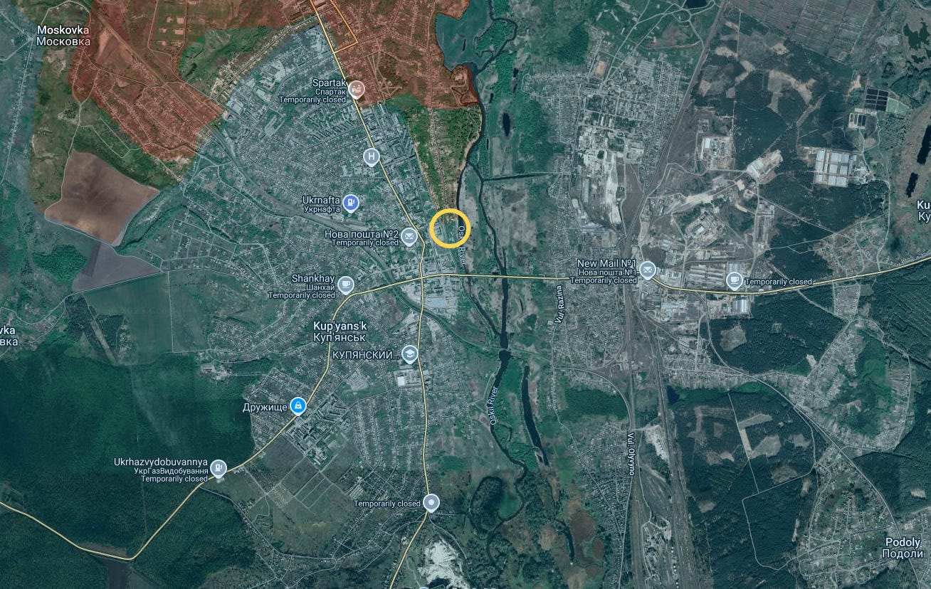 We don’t know if this is just DRG or regular troops who’ve consolidated their positions. But the important thing to note is the proximity to the central bridge and main supply artery which connects east and west Kupyansk over the Oskil river. The bridge is only two blocks south of the Russian soldier’s position.