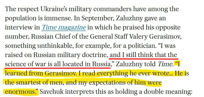 In a new interview, General Zaluzhny again reiterates something he had explained long ago when he revealed Gerasimov to be his idol, and once said that Russia is the military science capital of the world. Recall this article from two years ago: