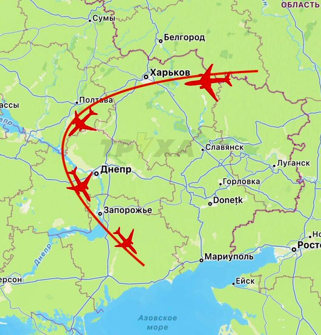 There are claims that in the past couple of weeks, Russian jets have already been doing this, as well as “new types of drones.” Not only have a few interesting videos turned up—one of them showing a Russian Su-24M flying over Kherson at an altitude high enough to suggest it had zero fear of AD (i.e. 3000-5000ft rather than the usual 100-300ft), but also a few days ago the AFU complained that some sort of new ‘long range’ and ‘high altitude’ set of drones were flying deep over their territory in the following route: