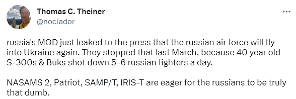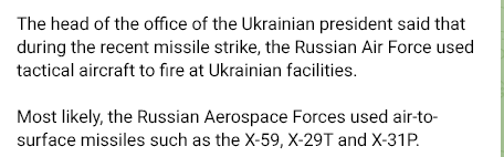 And by the way, there is far more evidence of why the Ukrainian AD is heavily degraded to the point of nonexistence, but I feel it’s beyond the scope of this simple Sitrep and don’t want to get into every single point—but just know that this part is not mere speculation, it’s based on heavy, accurate longstanding analysis with much corroborative facts which include the direct statements of several RuAF pilots in interviews posted to the Russian MoD channel, where they directly state this.