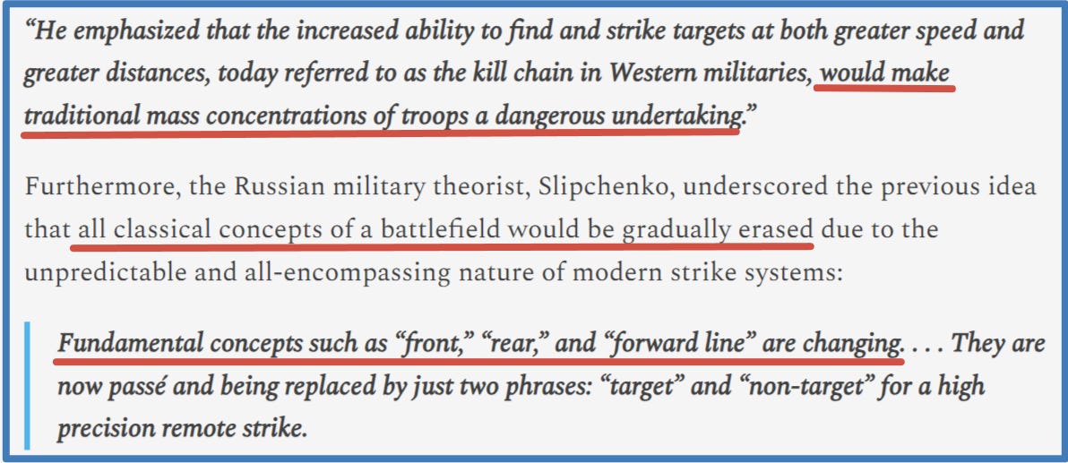 Fascinatingly, some Russian theorists I pointed to previously had long expressly predicted this type of warfare evolution. For instance, take this article: