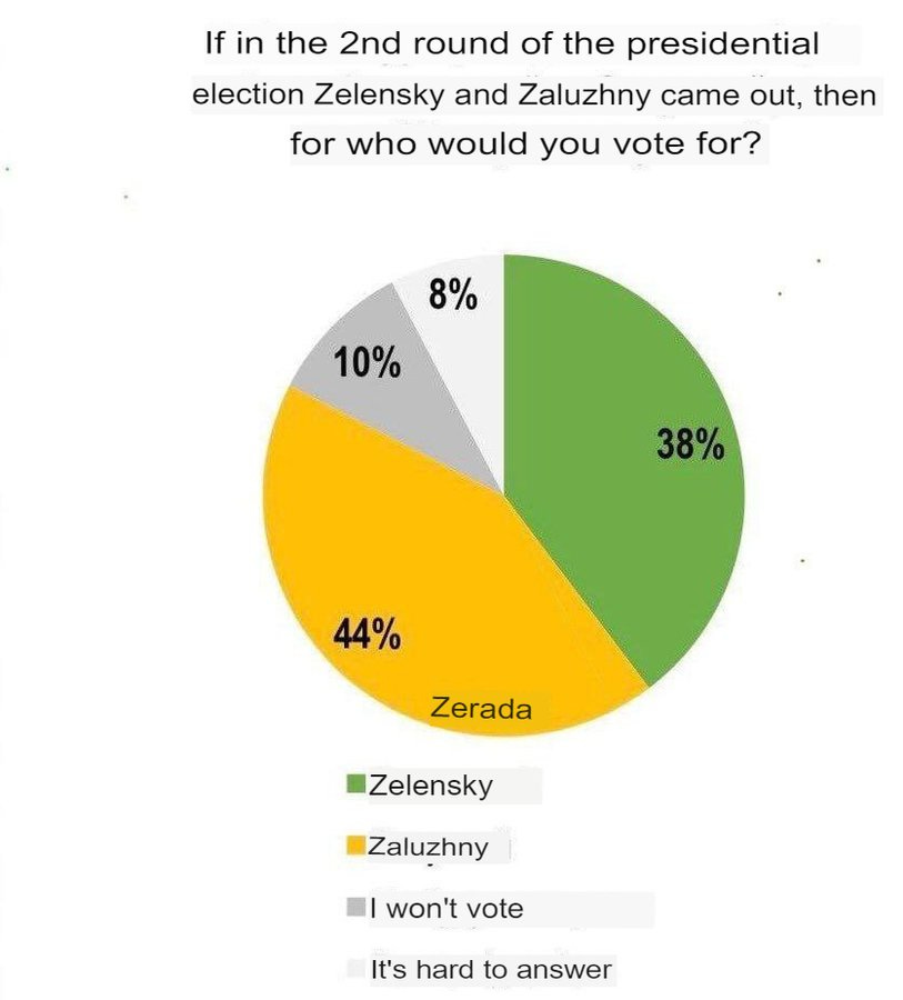 When sociologists model the second round of the presidential elections, Zaluzhny wins the election over Zelensky with a result of 44%: 38%! At the same time, 8% had difficulty answering (and let's remember what that means).