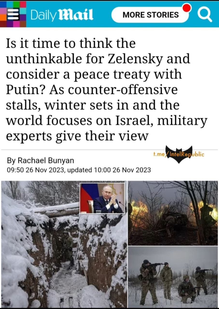 Granted, much of this is highly speculative and uncorroborated, however it clearly falls within the realm of reason. Also, many of the ‘rumors’ I’ve sourced thus far, come from channels which have recently been vindicated and validated. For instance, Resident/Legitimate channel were first to report weeks ago—which I relayed in my own reports—that Zaluzhny was pushing to build defensive fortifications, and a defensive reorientation in general; now Zelensky himself has officially acquiesced.