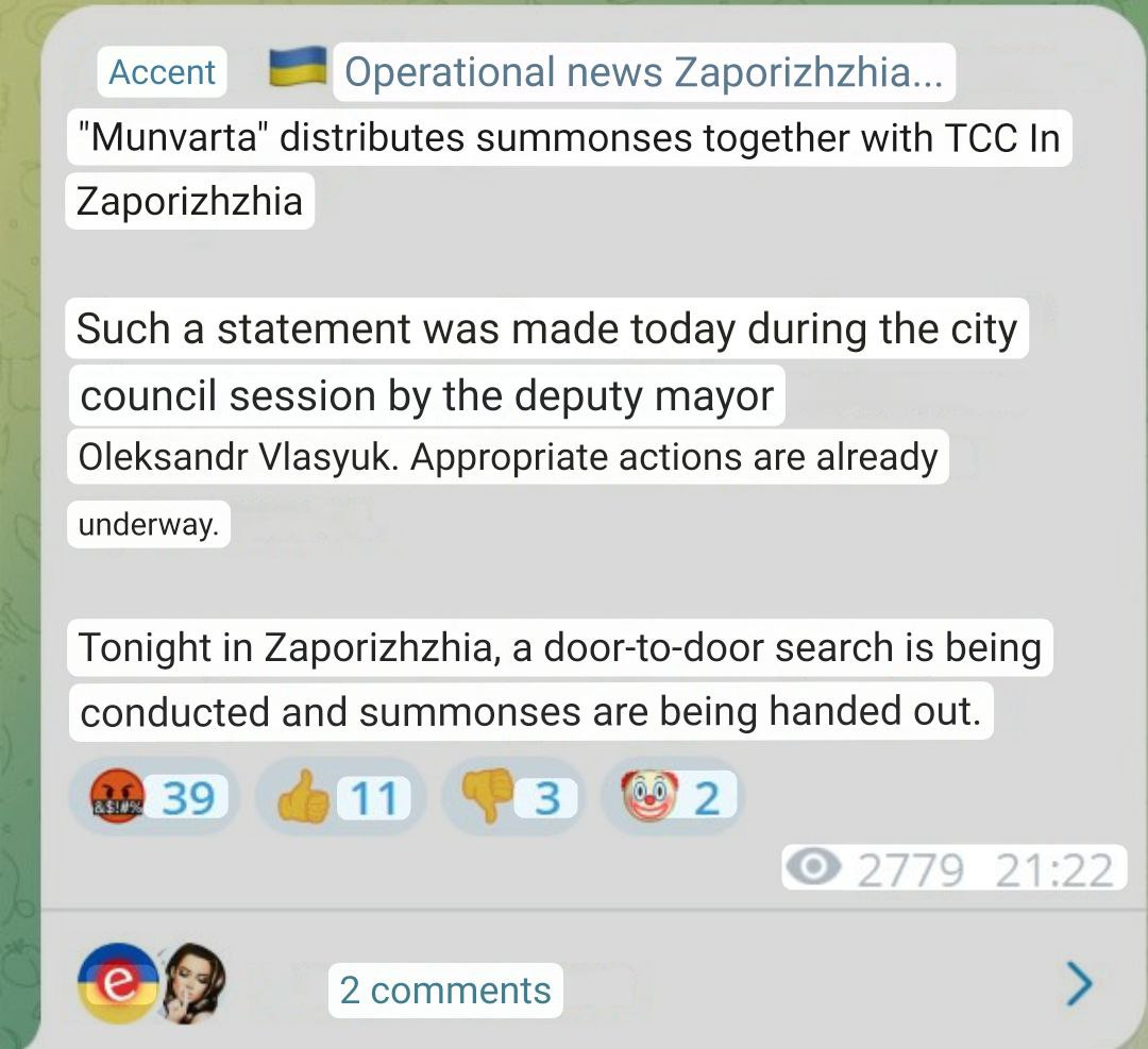 One of the major issues is that incoming reports from several districts continue corroborating that previous mobilization numbers have been absolutely disastrous. Firstly the head commissar of Sumy region reported that in the last 3 months they only achieved 8% of their mobilization quota: