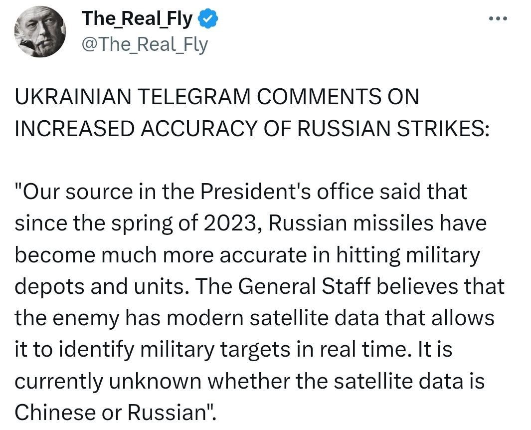 As for the strikes—Russia did a new round of strikes last night with Onyx missiles, as well as others. There were reported hits, such as this confirmation from a Nikolayev underground/partisan network member, who relayed that one such strike reportedly hit a mercenary base with many casualties: