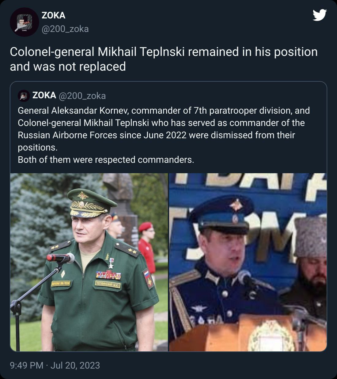 For instance, we were meant to believe that upwards of 5-7 big Russian “anti-Shoigu” generals were recently purged; Popov, Teplinsky, Surovikin, Seliverstov, Kornev, and probably one or two others I may have missed off the top of my head.