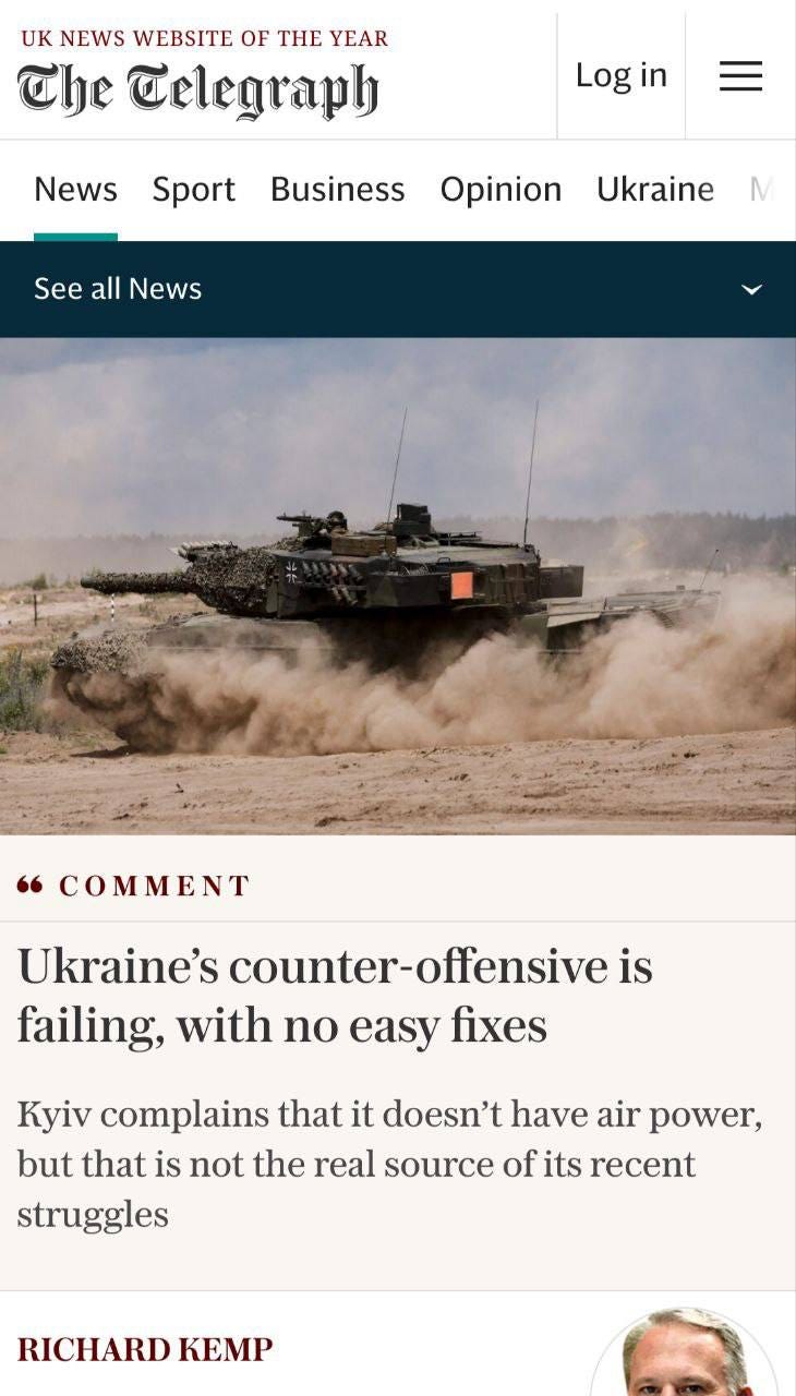 ▪️Kyiv's Western handlers make no secret of their disappointment with the results of the so-called counter-offensive.
