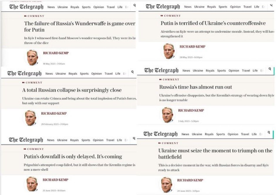 Earlier this year, he predicted that Russia would not capture Bakhmut, and after capturing it, he further predicted that it cannot hold Bakhmut and that it would soon fall back to the AFU: