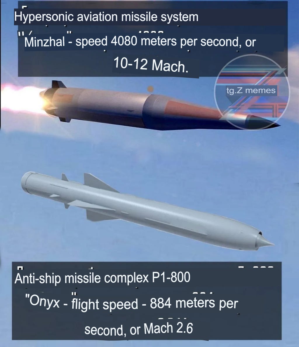 Most risible about that is the fact that just earlier they claimed to be routinely taking out Russian Kinzhal missiles which are said to travel upwards of Mach 10.
