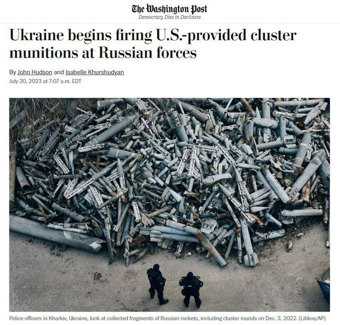 Speaking of cluster munitions—which Western MSM has now admitted that Ukraine has begun using in full: