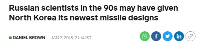 As another example, Iran’s premier missile program was the Shaheb-1, which later spawned variants like Shaheb-2 and 3. This was Iran’s first short/medium range ballistic missile which laid the groundwork for their missile industry. The Shaheb-1 is almost an exact copy of the Russian R-17, also called the Scud. It’s claimed that Iran used an R-17 supplied by North Korea, but it was Russia that gave them to North Korea:
