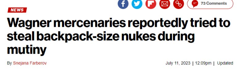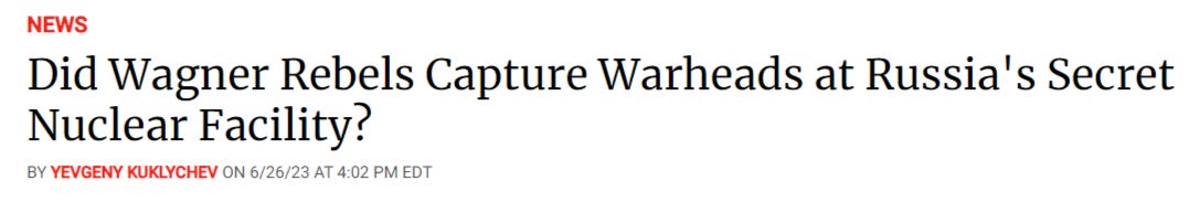 One thing of interest I can say in this regard, was that in the recent Wagner rebellion during June, Ukraine’s SBU boss Budanov made the claim that Wagner was in fact heading towards a specific facility known as Voronezh-45 that’s right along the route they were taking towards Moscow. He states that this facility houses “nuclear backpacks” and Prigozhin was trying to seize them: