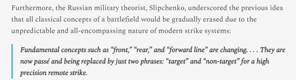 In fact, in the article I even quote a paper or two from Military Thought, in particular the one from Generals Bogdanov/Chekinov called The Nature and Content of a New-Generation War, but also American papers like this one which talk about future war developments from the perspective of Soviet doctrine.