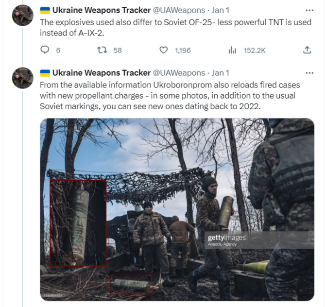 There was a batch of strange looking shells that reached the front which were identified by UA experts as indigenous production, using less powerful types of explosives and generally not as good as the Soviet counterpart: