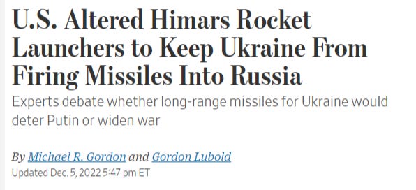 There are many openly stated, implied, and secret red lines for Ukraine from their Western handlers. An example of an open one was how the U.S. reprogrammed its HIMARs rockets to literally not be able to function in Russian territory, as reported by the Wallstreet Journal: