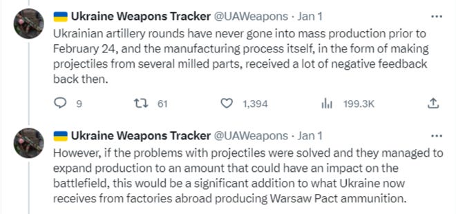 First let me address shells which is the most realistic thing Ukraine could ever potentially even attempt to produce. There were a lot of rumors earlier in the year that Ukraine had begun production of its own 122mm and 155/152mm artillery shells. However most of this is smoke and mirrors.
