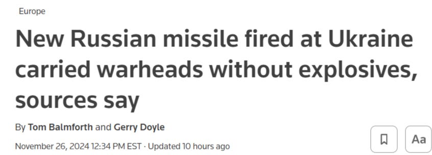Reuters now reports that investigators have allegedly found the Oreshnik which struck Dnipro was in fact inert and contained no explosive warhead at all, being merely a “warning” to the West: