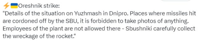 Lastly to update a little on the Oreshnik and Yuzhmash situation.
