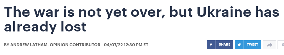 Of course he still manages to clothe his prognostication with some cope-swilling insinuations that the results of such a scenario would owe more to Russian weakness and failures of military objectives, rather than the more obvious admission that Ukraine’s own near-certain objectives of victory (reconquering Crimea, etc.) have gone up in smoke in the eyes of even the most ardent and fanatical NATO supporters.