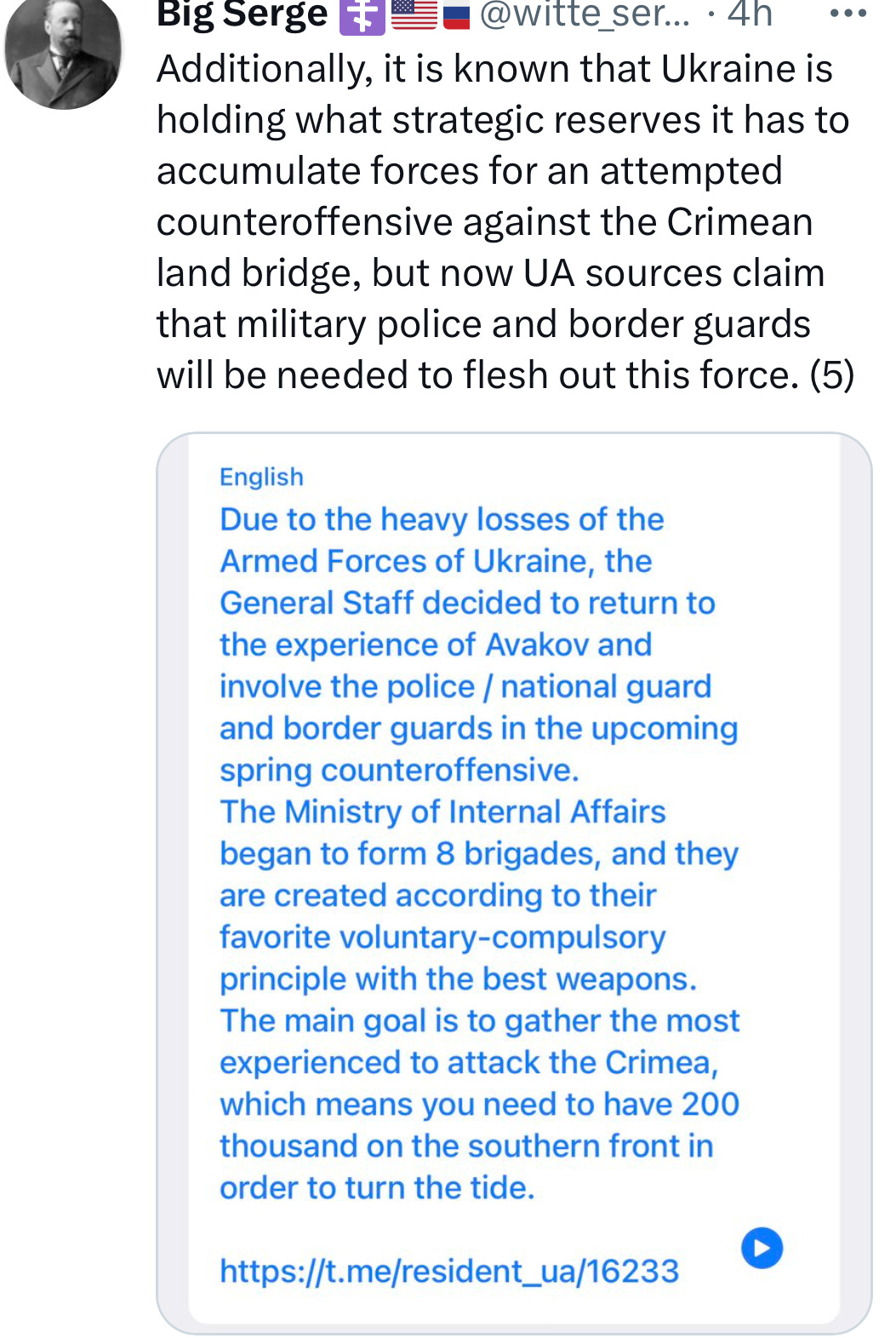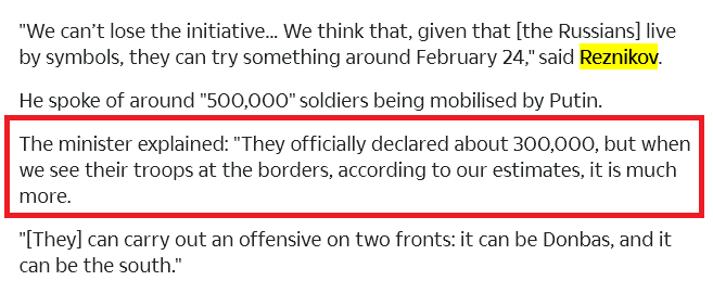 Note above where he specifically says there’s a declared 300k mobilized, but Ukrainian security services are counting 500k on their borders.