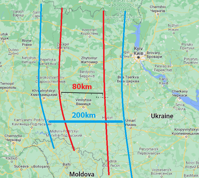 So—Macgregor favors the medium line. The strike down from Belarus towards Vinnytsia and Moldova, by way of Zhytomir: