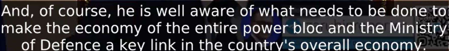 The other hugely important point is two-fold. Firstly, he reinforces our earlier reports that the hiring of Belousov is entirely centered on managing the Russian economic integration of the defense and civil fields.