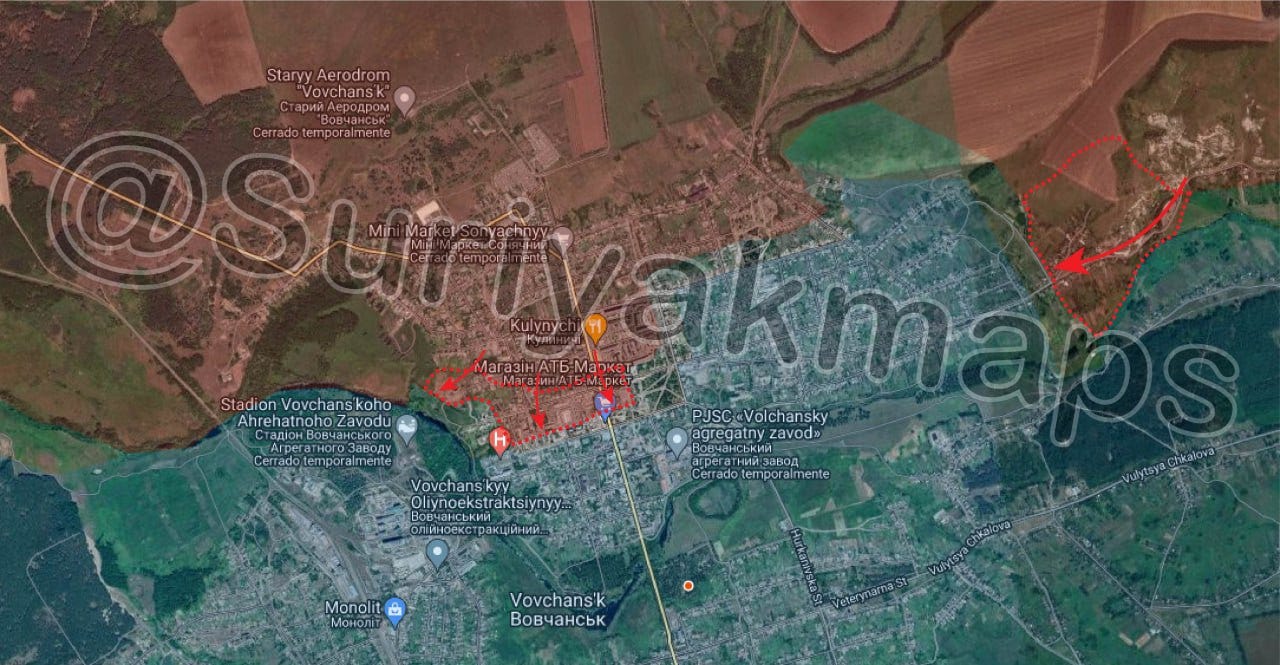 The latest Suriyak maps have Volchansk about 20-30% controlled by Russian forces, give or take: