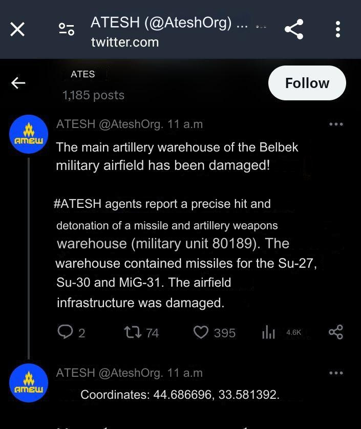 Btw, here is proof of my assertion that Belbek was mostly a defensive base used for surveillance and defending Black Sea rather than any strategic offensive significance. Defense analyst/expert has identified the Mig-31s as NOT Mig-31Ks (which launch Kinzhal missiles) as all pro-UA posters assumed, but rather the defensive Mig-31BM interceptors meant merely to patrol the Black Sea for drones, planes, etc.
