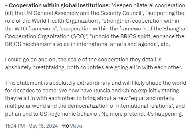 Russia and China are truly shaping up to lead the world together through the adolescence of this century, reshaping the international order into one based on real principles rather than the fraudulently imagined crony “rules based order” trap of the dying Anglo-American Empire.
