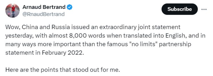 Arnaud Bertrand sums up some of the most significant details: