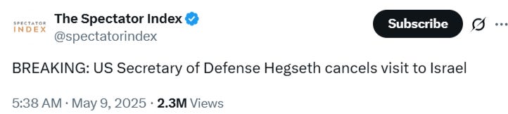 This comes alongside news that SecDef Pete Hegseth cancelled his trip to Israel:
