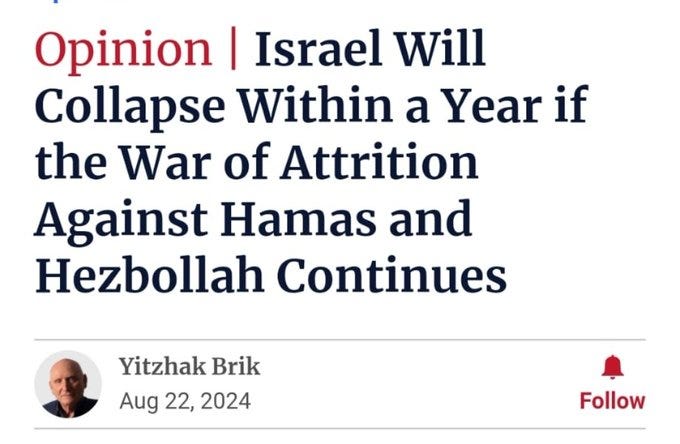 While Israel may not ‘collapse’ by August, it is however facing all kinds of systemic problems within its military structures. Just weeks ago the IDF’s new military chief warned of plaguing issues which are preventing the achievement of Gaza objectives: