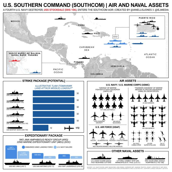 At the same time, Washington is actively restoring its old base in Puerto Rico and has brought in Marine Corps units, drones, naval assets, and even a vessel linked to Special Operations forces.