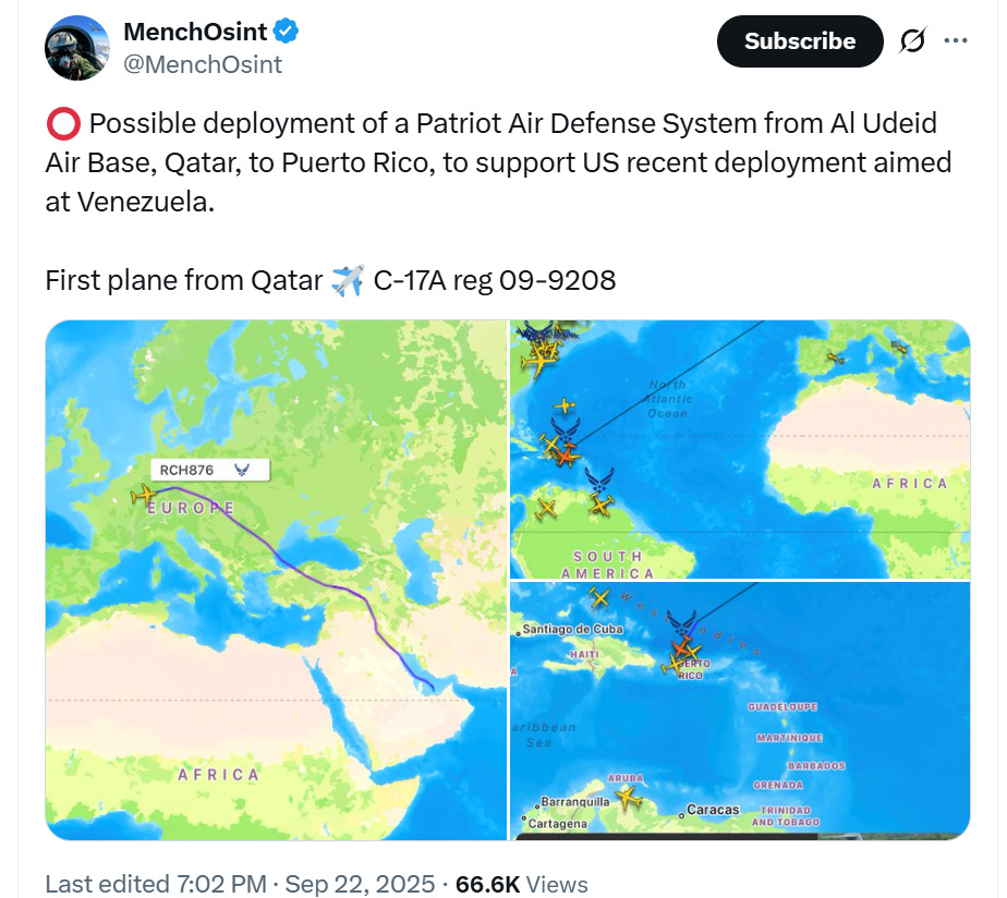 Other unconfirmed reports claim that the US has even flown Patriot systems from Qatar to Puerto Rico: